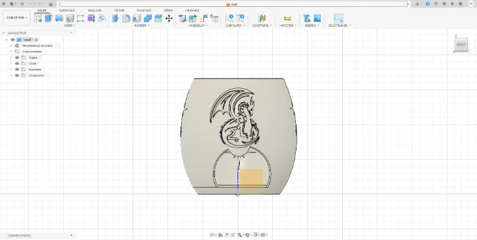 Modélisation d'un futur brûle parfum thème dragon dans Autodesk Fusion.